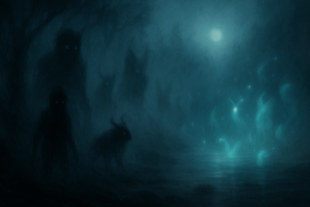 Amid its veils of mist and shadowed waters, whispers speak of life stirring just beyond sight. Yet no traveler has charted their forms — their shapes remain secrets, waiting to be discovered.