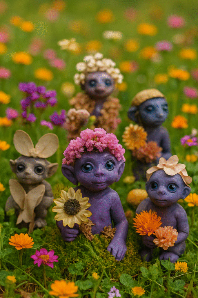Because of this ever-shifting camouflage, no true count of their numbers has ever been made. Lone wanderers sometimes glimpse them at dusk, clustered together in small gatherings, adjusting their cloaks or sharing sprigs of herbs with one another. Others claim to have seen them by moonlight, dancing in circles so faint they vanish the moment they are noticed, leaving only scattered petals behind.