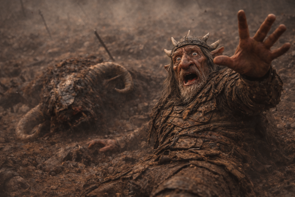 As the stunned survivors scrambled to their knees, still struggling to comprehend the devastation unfolding before them, a new sound rose from the mountains — deep, rhythmic, unmistakable: wardrums.