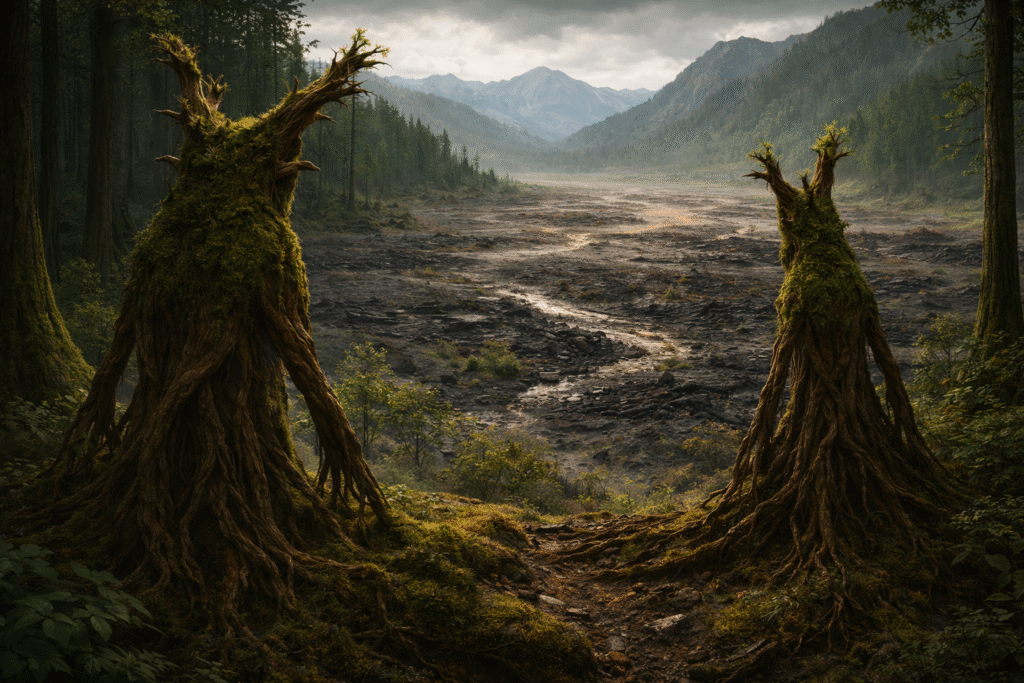 For weeks the mountains had been grumbling in the distance, a restless growl beneath the earth, and in the final days that unease had only grown stronger. But when night finally fell, the world shifted in a way no one expected: every sound vanished at once. No wind stirring the leaves, no calls of beast or bird, not even the familiar deep rumble from the mountains. The silence was so sudden, so absolute, that it seemed to press against the ears like a physical force.
