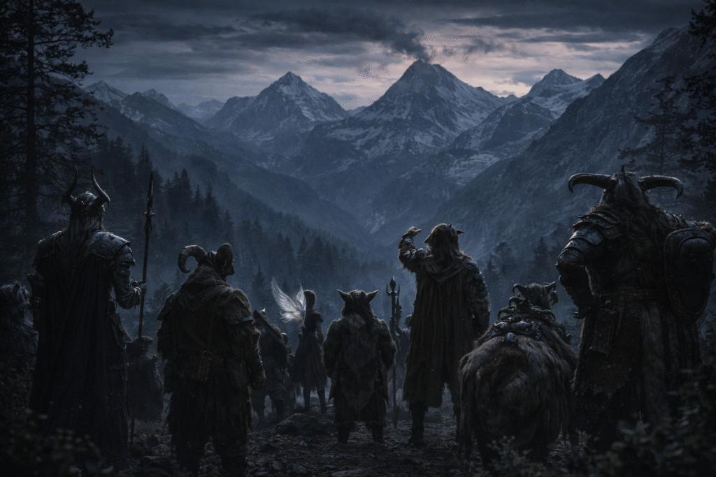 They burst out of the mountains half-frozen and shaking, but alive. By the time they reached the nearest Vhalandir settlement, they could barely speak yet their warning was clear enough. A second party was sent to retrieve a body, proof of what they had faced, or at least to bring home their fallen kin. But when they reached the site of the first battle at the foot of the mountain, all traces of the creatures were gone. There were no footprints, no discarded weapons, barely any sign of battle—only the bodies of the Vhalandir who had fallen, untouched except by the silence of the forest. The dead were carried home, and a long period of mourning swept through the tribes. Some hoped that the creatures had been frightened enough to disappear forever. Others feared that this quiet was only the beginning.