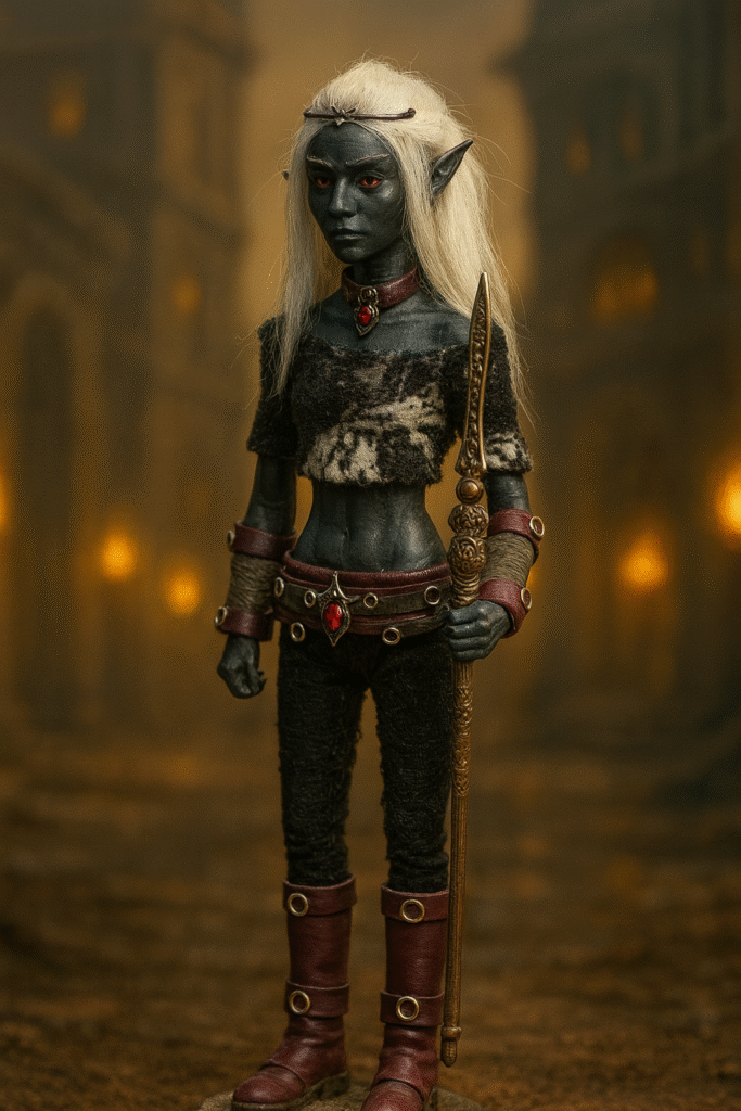 The youngest of three sisters, Vel’ythra, was the least expected to survive. While her sisters vanished into guilds and courts, she remained in the barracks of her house, training with spear and shield. The noble daughters mocked her devotion, calling her “stone-bound” and “the matron’s pet.” She answered with bruises.